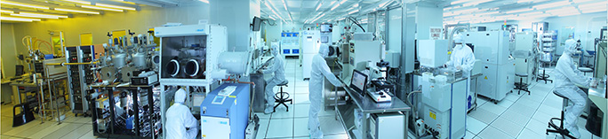 In order to minimize the human contamination of the research products in the cleanroom, those who wish to enter must first put on a set of cleanroom garments consisting of a hair cover, a face mask, a cleanroom gown, gloves, shoe covers and boots. They will then have to walk through an air shower at the entrance for pollutants removal.